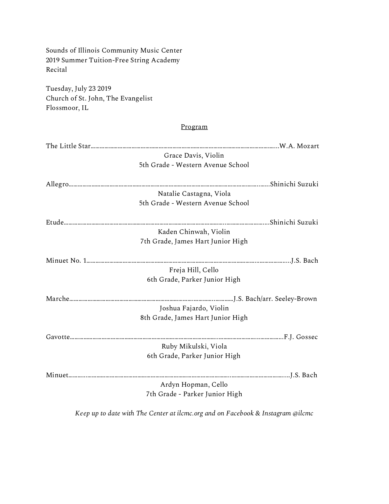 ILCMC hosts recitals for our students and community members to showcase their skills. If you’re interested in learning more or performing, reach out to us!